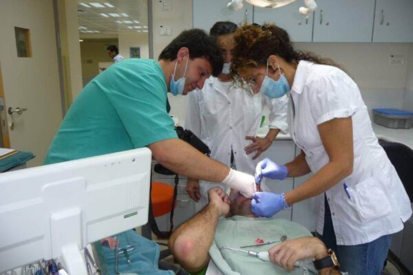 ד"ר. וינברג מבצע השתלת שיניים בבית החולים בילינסון